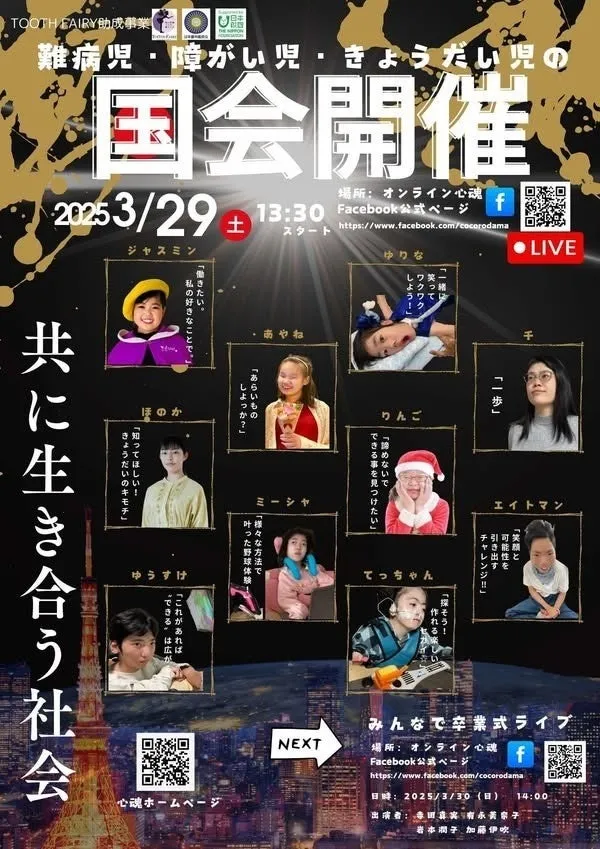 2025年3月29日、NPO法人心魂プロジェクトが主導する「難病児・障がい児・きょうだい児の国会」が初めて開催されます。このイベントは、オンラインでの配信を通じて、10人の登壇する子どもたちが「共に生き合う社会」をテーマに、自らの体験や思いを発信する場となります。