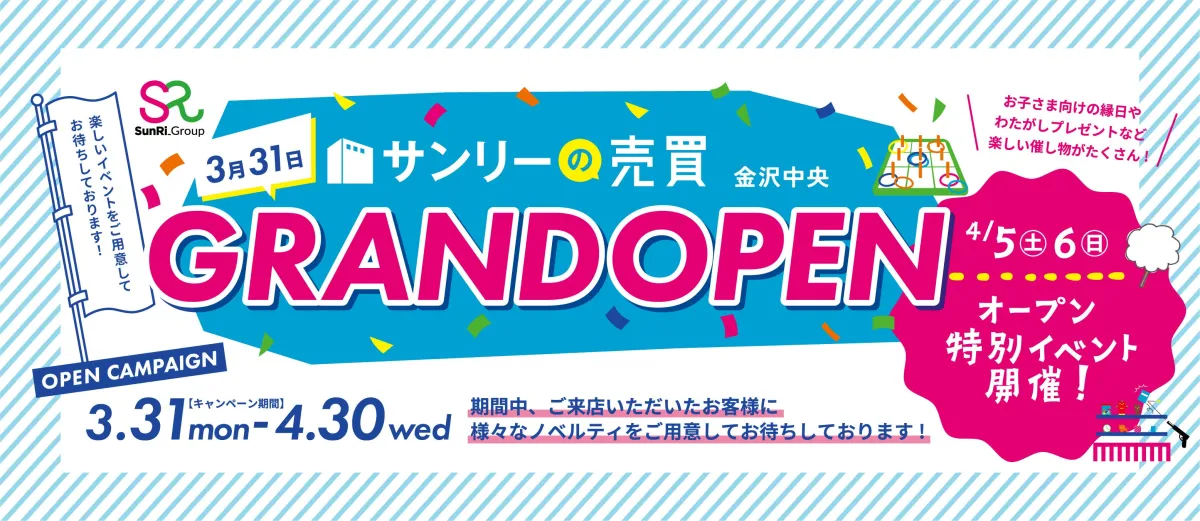 4月5日と6日には特別なオープン記念イベントも予定されており、来店者を楽しませるための様々な催しが企画されています。サンリーの売買金沢中央は、ただの不動産売買店にとどまらず、地域の方々に喜ばれる場を目指しています。