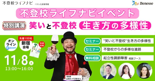 不登校に関わるご家族やお子様を支援する情報発信サイト「不登校ライフナビ」が、2025年11月8日(土)に特別なハイブリッドセミナーを開催します。このイベントでは、お笑いタレントの山田ルイ53世さんを講師に迎え、「笑いと不登校 生き方の多様性」というテーマについての講演が行われます。