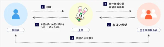 - - 顧客紹介: 郵便局の空き家みまもりの利用者から、流通や利用に関する希望があった場合、当協会が適切な不動産業者を紹介します。これにより、所有者は専門的な支援を受けやすくなります。