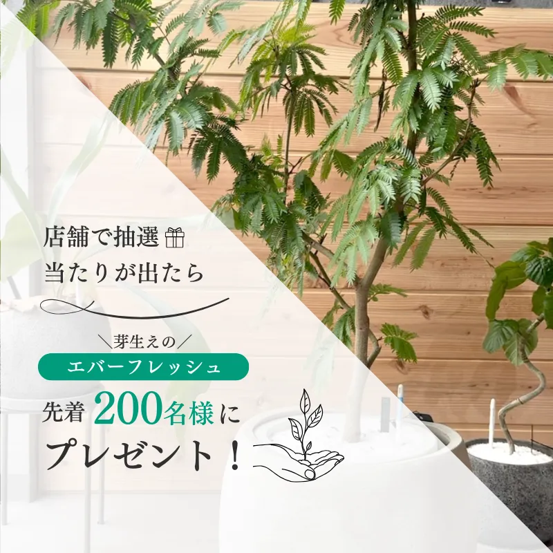 叶えたいのは、植物との豊かな関係。静岡県にある無人観葉植物ショップ「ONE PLANTS(ワンプランツ)」清水町店が、2025年10月25日(土)から「芽生えのエバーフレッシュプレゼントキャンペーン」をスタートします。このキャンペーンでは、店舗内に設置されたQRコードをスマートフォンで読み込むと、LINEを通じてその場でデジタル抽選に参加。50%の確率で、発芽したてのエバーフレッシュを手に入れることができるという特別企画です。
