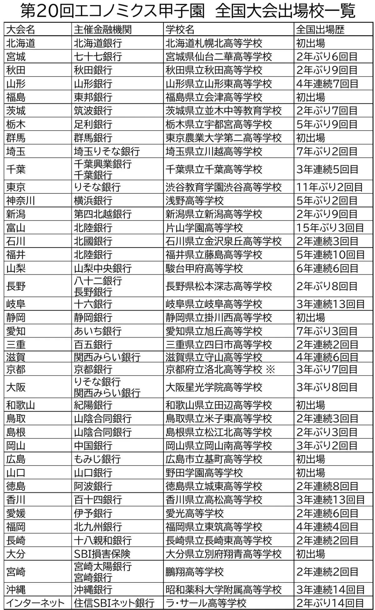 全国大会出場校一覧