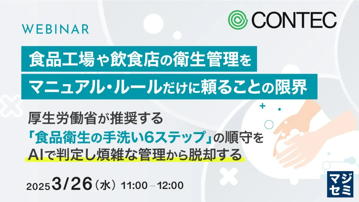 今回のウェビナーでは、このAI手洗い判定システムを詳細に解説します。食品工場や飲食店の衛生管理の強化を図りたい方、また管理の負荷を軽減したいと考えている方には特に役立つ情報が得られるでしょう。