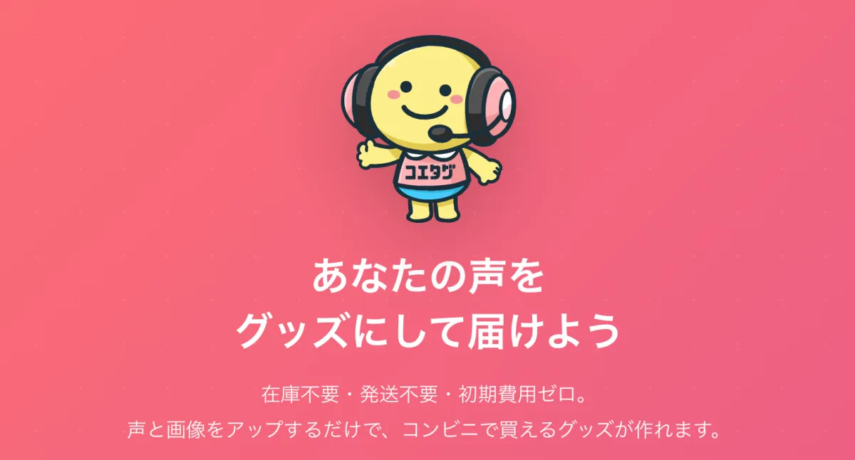 「コエタグPRINT」は、QRコードを読み取ることで音声が再生される声付きブロマイドを提供するサービスです。クリエイターは画像と音声をアップロードするだけで商品登録が完了し、在庫を持つ必要がありません。受注後にコンビニで印刷されるため、初期費用や在庫リスクを気にせずに物販を行うことができます。2025年のサービス開始以降、VTuberやイラストレーター、声優、同人作家など、さまざまな個人クリエイターが利用しています。