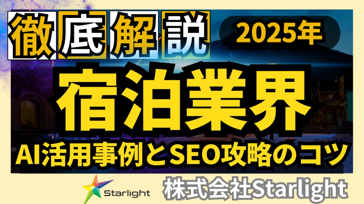 株式会社Starlightは、宿泊業界のマーケティング担当者必見の「2025年版 宿泊業界向けAI×SEOトレンドレポート」を発表しました。このレポートは、宿泊業界におけるSEO(検索エンジン最適化)を活用して集客を強化するための知見や成功事例が満載です。