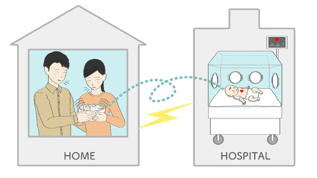 - - NICUに入院中の赤ちゃんと遠隔の家族をオンラインで接続し、映像・音声を届けます。
