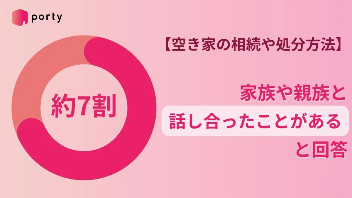 株式会社ポルティが2025年3月に実施した空き家に関する実態調査の結果、全国の空き家オーナー250名を対象にしたところ、約7割が家族や親族との話し合いの経験があることが分かりました。空き家の相続や処分方法について、対話を行ったことがあるとの回答は72.8%でした。