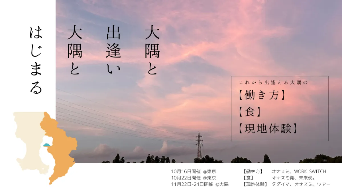さらに11月には、2泊3日の「タダイマ、オオスミ。ツアー」が実施されます。このツアーは単なる観光ではなく、地域住民との交流を重視した「人とつながる旅」をテーマにしています。参加者は大隅の美しい自然や新鮮な食材を味わいながら、当地の人々との出会いを通じて有意義な体験を得ることができます。ツアーの最後には、ワーケーション施設でのワークも予定されており、滞在中に得た貴重な学びを次のステップへとつなげる機会も提供されます。