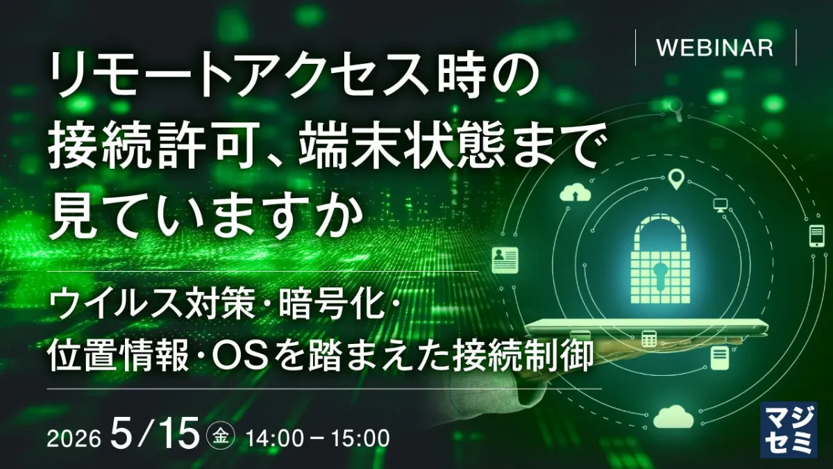 企業におけるリモートアクセスの重要性は年々高まっています。しかし、接続の許可が「ユーザー認証」のみを基に行われるケースが多く、端末の状態を適切に考慮できていない現状があります。そこで、Absolute Software株式会社が主催するウェビナーに参加することで、この問題を解決するための方法を学ぶことができます。
