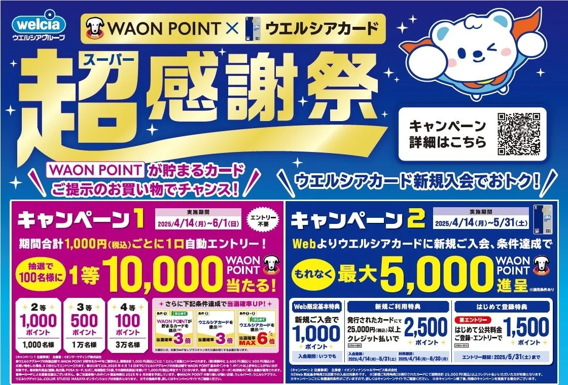 ウエルシア薬局が贈るWAON POINT×ウエルシアカード超(スーパー)感謝祭