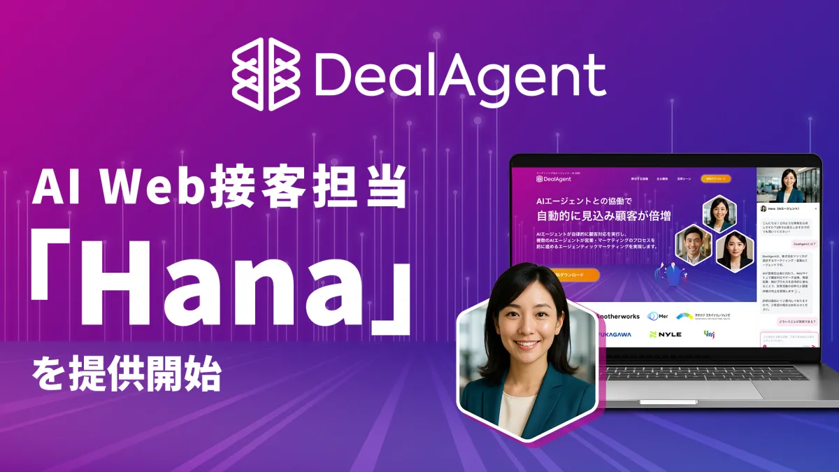 株式会社マツリカが運営するマーケティングAIエージェント「DealAgent(ディールエージェント)」は、AI Web接客担当「Hana」を新たに提供開始しました。この「Hana」は、ユーザーに親しみを感じさせる人間らしい外見や自然な対話を通じて、Webサイト訪問者に信頼感のある接客体験を提供します。
