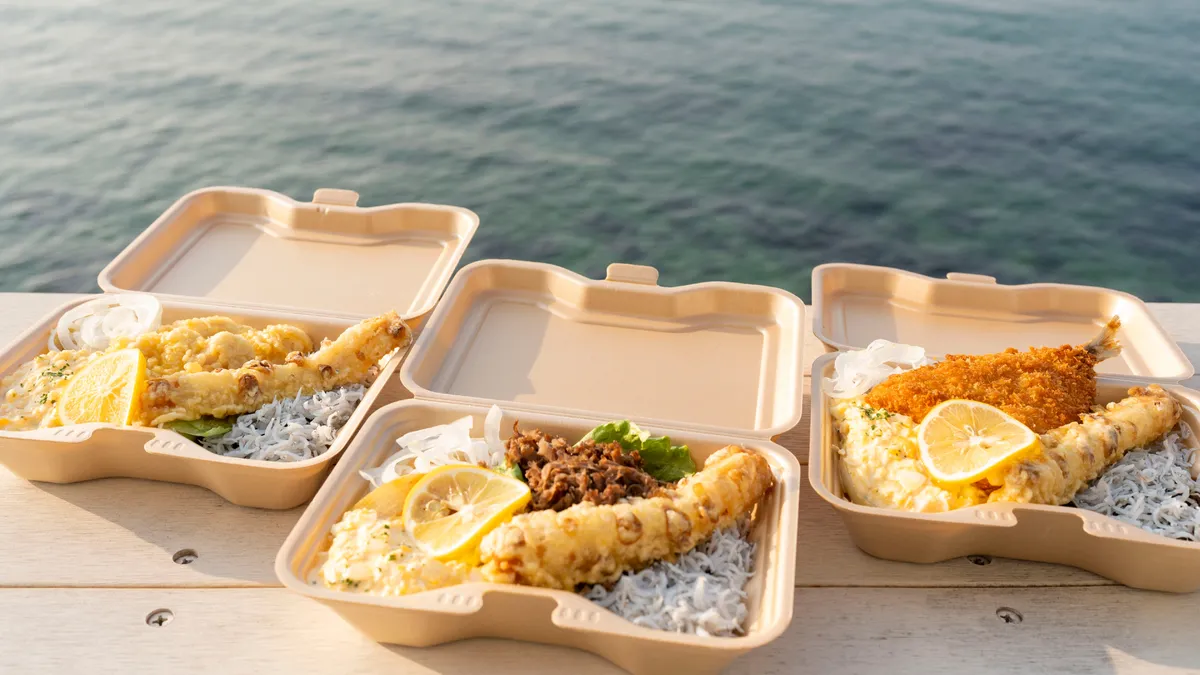 『淡路島食堂 のりと米』では、地元産のアジを使用した豪華な「のり弁」が自慢です。特に、衣がサクサクで中はふわふわの大きなアジフライをあしらった「淡路島のり弁 アジ」や、ジューシーな淡路鶏の鶏天が特徴の「淡路島のり弁 淡路鶏」、旨味溢れる淡路牛が乗った「淡路島のり弁 淡路牛」を楽しむことができます。これらの手作り弁当は、淡路島の恵みを存分に味わえるメニューです。