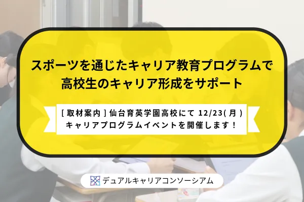 スポーツを通じたキャリア教育プログラムが2023年12月23日、宮城県の仙台育英学園高等学校で開催されます。このプログラムは、株式会社SPLYZAを中心に、学校法人河合塾や株式会社KEIアドバンス、株式会社NOLTYプランナーズの四社が共同で推進する「デュアルキャリアコンソーシアム(DCC)」の一環です。この講義では、高校生が自分自身の非認知能力を見つめ直し、今後のキャリアを考えるきっかけを提供します。