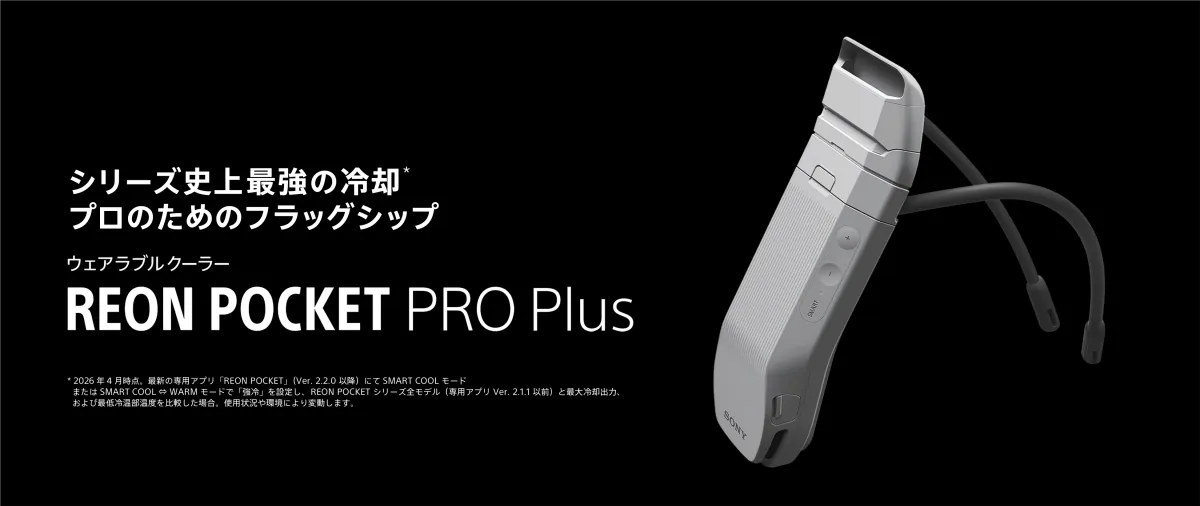 ソニーサーモテクノロジー株式会社は、4月21日から新しいウェアラブルサーモデバイスキット『REON POCKET PRO Plus(レオンポケット プロ プラス)』を発売します。これは首元に装着し、直接肌に冷却または加熱効果をもたらすデバイスとして、シリーズのフラッグシップモデルに位置付けられています。