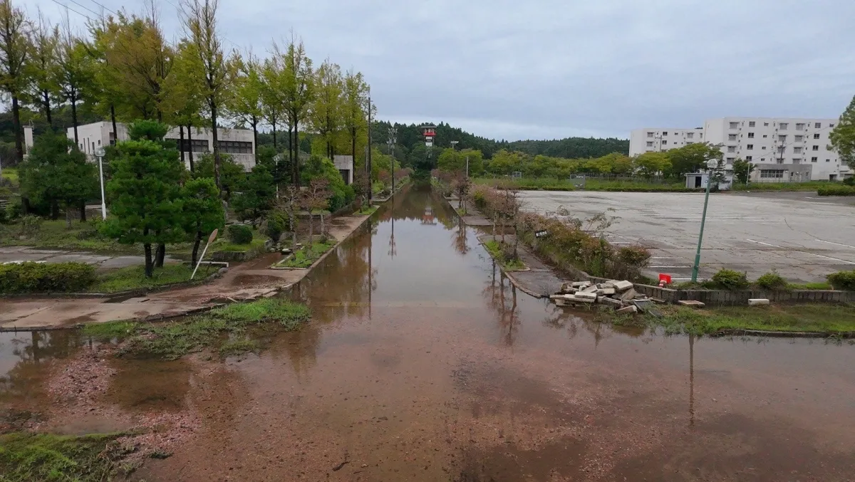 2日目の活動は、能登町の内浦総合運動公園で行われます。公園のグラウンド周辺には、津波による土砂や草木が堆積したままで、手つかずの状態が続いています。参加学生たちは、これらの土砂の搬出や草刈り作業を行う予定です。