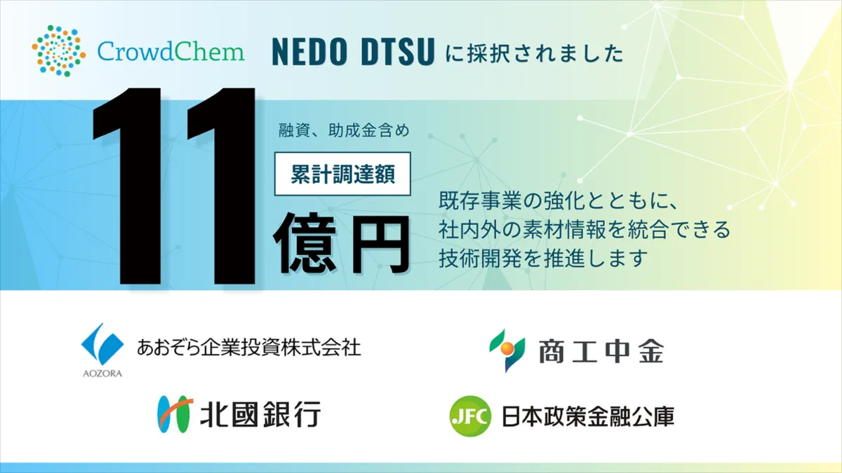 株式会社CrowdChem(以下、CrowdChem)は、最新のニュースとして、国立研究開発法人新エネルギー・産業技術総合開発機構(NEDO)が実施する「ディープテック・スタートアップ支援基金/ディープテック・スタートアップ支援事業(DTSU)」の第6回公募に採択されたことを発表しました。この採択により、CrowdChemは企業のデータ共有を推進し、より持続可能で便利な社会の実現を目指しています。