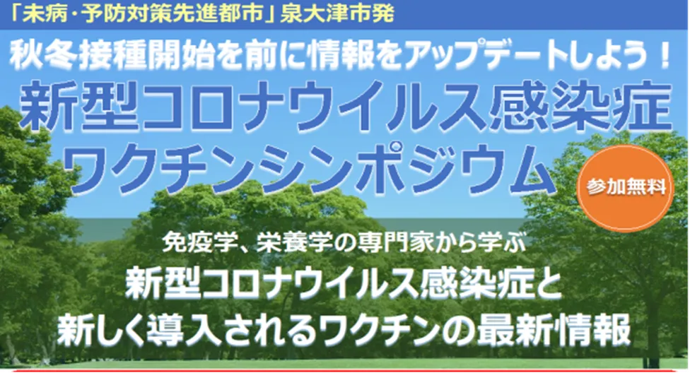泉大津市では、9月28日に新型コロナウイルス感染症とワクチンに関連したシンポジウムが、テクスピア大阪で開催されます。このイベントは、一般市民や医療従事者を対象としており、最新の健康情報や効果的な体づくりに関する知見を提供します。