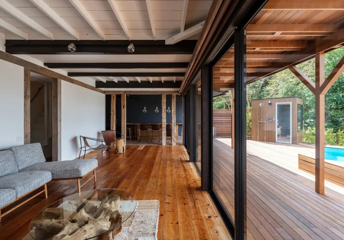 「海と森と宿 mina-to」は、既存の古民家に新たな要素を組み合わせ、ただの宿ではない新しい滞在体験を提供します。1968年に建てられた木造の古民家に加えて、木造トレーラーハウスとフィンランド式のサウナ及びプールが併設されており、訪れる人々が心身ともにリラックスできる空間を実現しています。