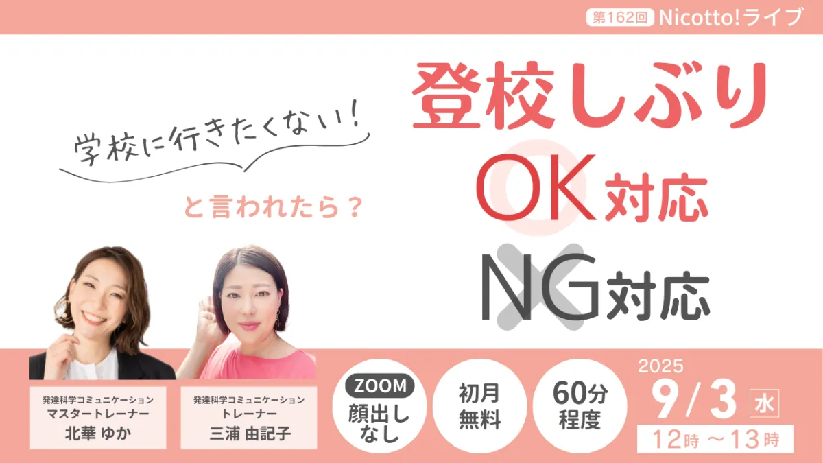 その対策として、9月3日に「Nicotto!塾」がオンラインライブを開催します。このライブでは、発達科学コミュニケーションマスタートレーナーの北華ゆかさんと、トレーナーの三浦由記子さんが登壇し、実践的な対応法を紹介します。その内容は、保護者がすぐに取り入れやすい具体的なアプローチが中心になります。