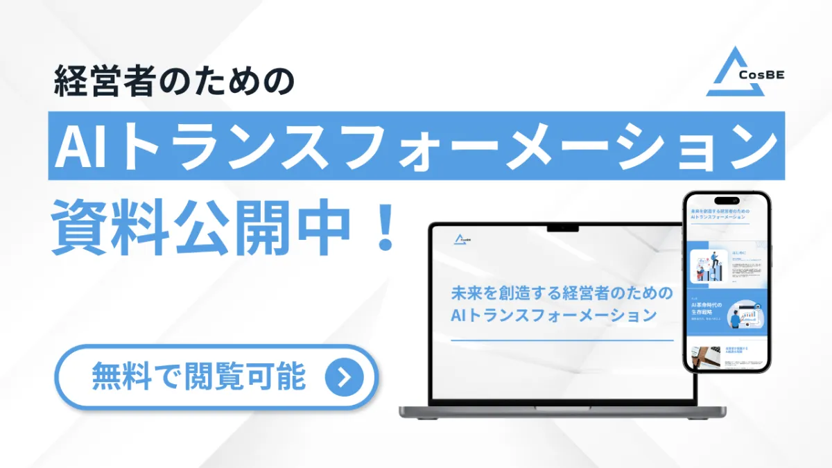 今こそ、中小企業経営者はAIトランスフォーメーションに挑戦する時です。CosBEのホワイトペーパーを通じて、AIの活用についての理解を深め、実際の経営変革につなげるための第一歩を踏み出しましょう。新たな時代の経営スタイルが求められる中で、最新の情報を得ることが、企業の未来を大きく変える鍵となるでしょう。