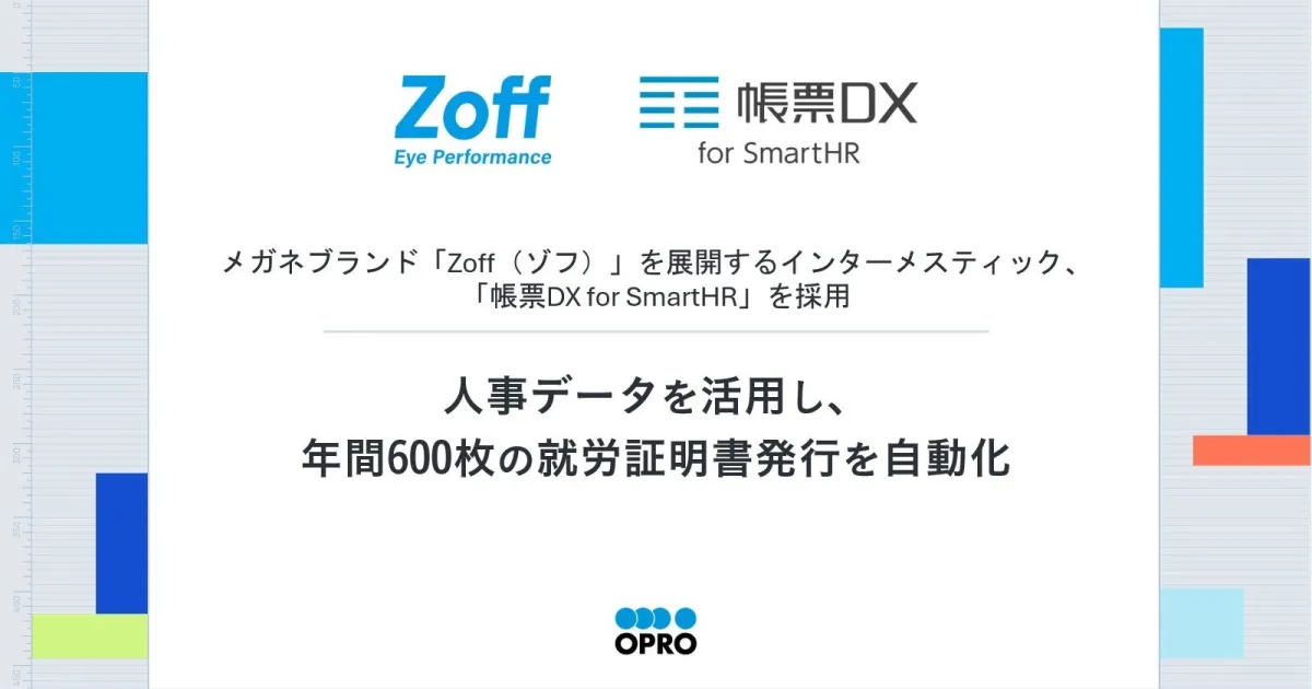 メガネブランド「Zoff」を展開している株式会社インターメスティックが、業務のデジタル化の一環として、株式会社オプロのクラウド帳票サービス「帳票DX for SmartHR」を採用しました。この取り組みは、同社の人事業務を効率化するための重要なステップとなり、年間約600枚の就労証明書をデジタルで発行することを目指しています。
