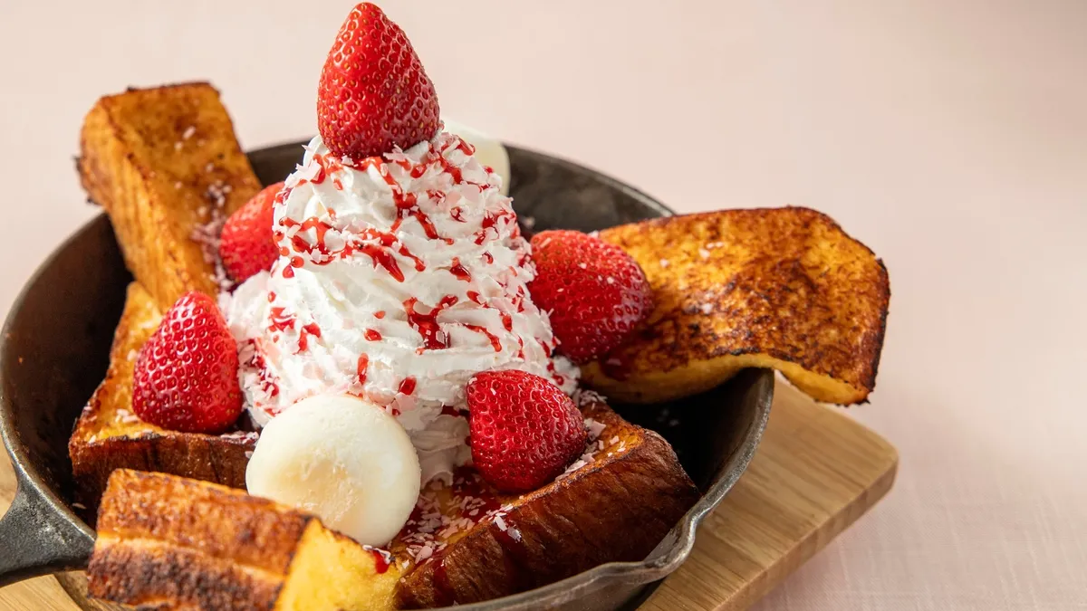 この美味しさは一度体験したら忘れられません。淡路島牛乳を使ったふわふわの自家製フレンチトーストに、たっぷりの生クリームといちご、ストロベリーソース、さらにだいふくアイスが際立ったトッピングで彩られています。春の訪れを感じる逸品で、見るからに華やかなビジュアルが食欲をそそります。価格は1,900円(税込)で、まさに春を感じさせる贅沢な一皿です。