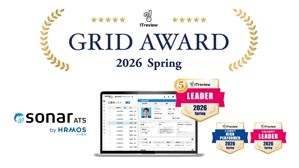 東京・中央区に本社を構えるThinkings株式会社が提供する採用管理システム「sonar ATS by HRMOS」が、ITreview Grid Award 2026 Springにおいて、見事に5年連続で「Leader」の称号を獲得しました。この評価は、採用管理システム(ATS)部門でのことです。また、大企業部門では「High Performer」、中堅企業部門でも「Leader」に選ばれました。