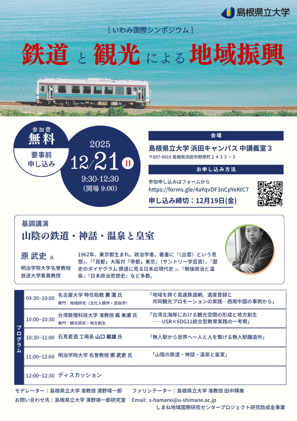 2025年12月21日に島根県立大学で開催される「いわみ国際シンポジウム」では、鉄道と観光の関わりが地域振興に与える影響について議論されます。今回のシンポジウムは、「石見地方の特色を再認識し、地域資源を活用すること」を目的としたプロジェクトの一環として企画されました。