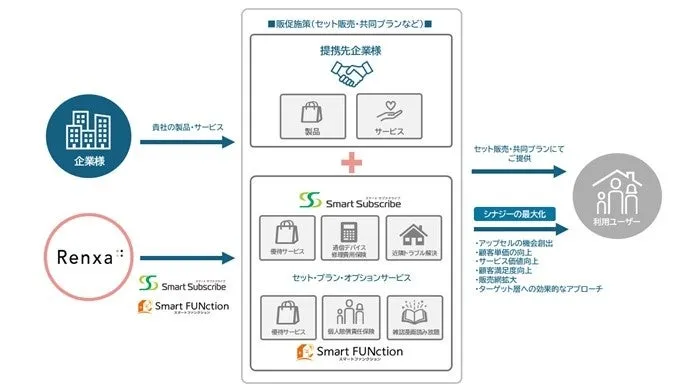 Renxa株式会社は「Smart Subscribe」と「Smart FUNction」を通じて、自社製品やサービスとのシナジーを図る企業を募集しています。共同マーケティングやセット販売など、協力を通じて競争力を高めることが目的です。これにより、顧客単価を上げ、販売機会を創出する戦略を推進中です。