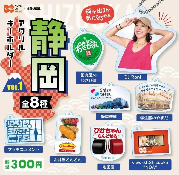 このキーホルダーは、知育玩具メーカー株式会社シャオール、静岡エフエム放送株式会社との共同企画で生まれたもので、静岡市民に愛される老舗店舗や施設など、全8種類のラインナップで展開されます。