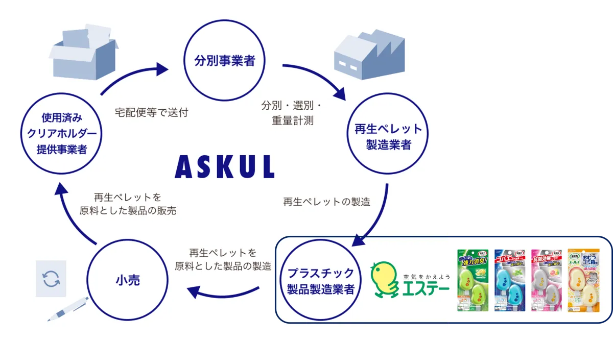 この取り組みは、限りある資源を有効に活用し、同時にCO2削減に寄与することを目指しています。アスクルでは、全国の事業所から使用済みのクリアホルダーを収集し、分別。そこから作られた再生ペレットを活用した商品を展開しており、すでに約276トンの使用済みクリアホルダーを回収する成果を上げています。