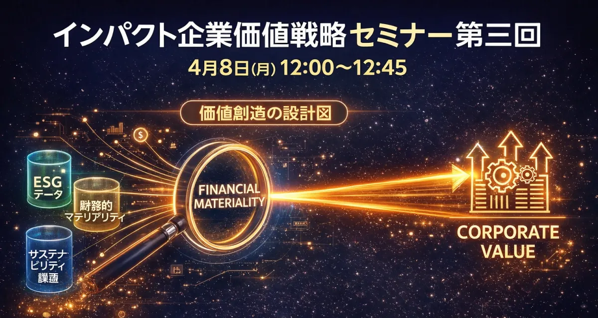 株式会社ソーシャルインパクト・リサーチが主催する「インパクト企業価値戦略セミナー第3回」が、2026年4月8日(水)12:00から開催されます。今回のテーマは「価値創造の設計図」。