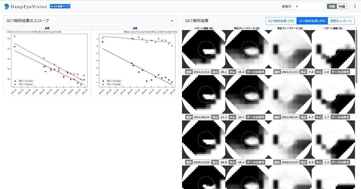 『AI-CO』は、OCTで取得した画像と自動視野計のデータを医師が簡単に比較できるように設計されています。これにより、緑内障の検査や治療を受ける患者の負担を軽減し、早期発見や病況の把握がより速やかに行えることが期待されています。この機能により、医療従事者は視覚的な検査結果を迅速に評価し、最適な治療法を選択する手助けを受けることができます。