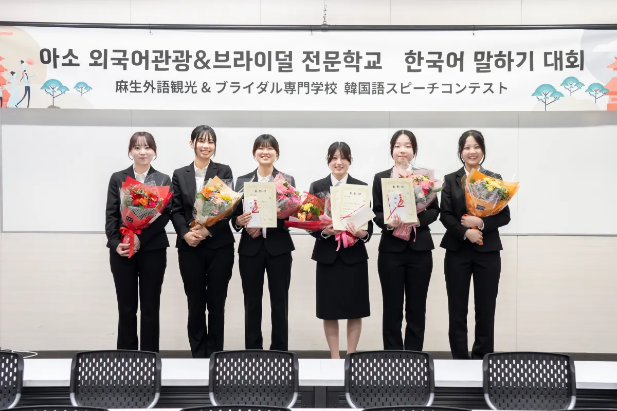 2026年1月20日、福岡の麻生外語観光&ブライダル専門学校で、韓国語を学ぶ学生たちによるスピーチコンテストが開催されました。出場者は、国内外でのコミュニケーション能力向上を目指す韓国語コミュニケーションコースの2年生6名で、日ごろの学びの成果を披露しました。