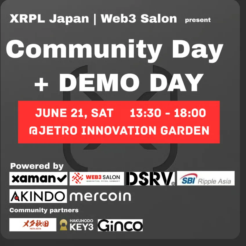 2025年6月21日(土)、東京都港区にあるアーク森ビルの7階にて、「XRPL Japan Community Day + DEMO DAY」が開催されます。このイベントは急成長を遂げているXRPLコミュニティを祝うもので、特にXRPL Japanハッカソンのファイナリストが集結し、彼らの革新的なプロダクトをライブでデモ披露する特別な機会です。