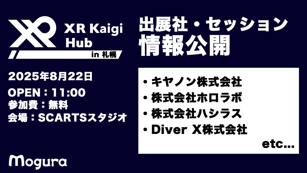 2025年8月22日(金)、北海道札幌市で「XR Kaigi Hub」が行われます。このイベントは、国内最大級のXRカンファレンス「XR Kaigi」の姉妹イベントとして位置付けられ、XR(拡張現実)、AI、バーチャル領域に関連する企業やクリエイター、開発者などが集まります。