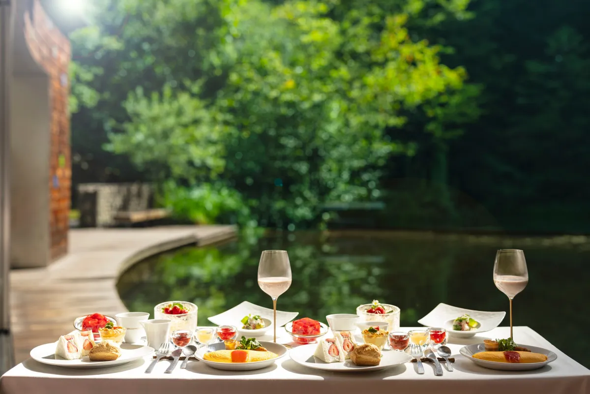 この朝食プランでは、希少な白いちごや黒いちごを含む3色のいちごを使用したメニューが用意されています。また、通常は夜のみ営業の「森のほとりCafe&Bar」を朝食会場として開放し、木漏れ日の差し込む水辺で心地よい朝を楽しめる絶好の場となっています。