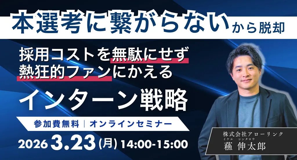 企業の人事や採用担当者にとって、インターンシップは新しい優秀な人材を見つけるための重要な施策の一つです。しかし、多大なコストをかけて集客したにもかかわらず、本選考に進む学生が少なく、そのまま離脱してしまう状況は少なくありません。この問題を解決するための方法を探求するセミナーが2026年3月23日にオンラインで開催されます。