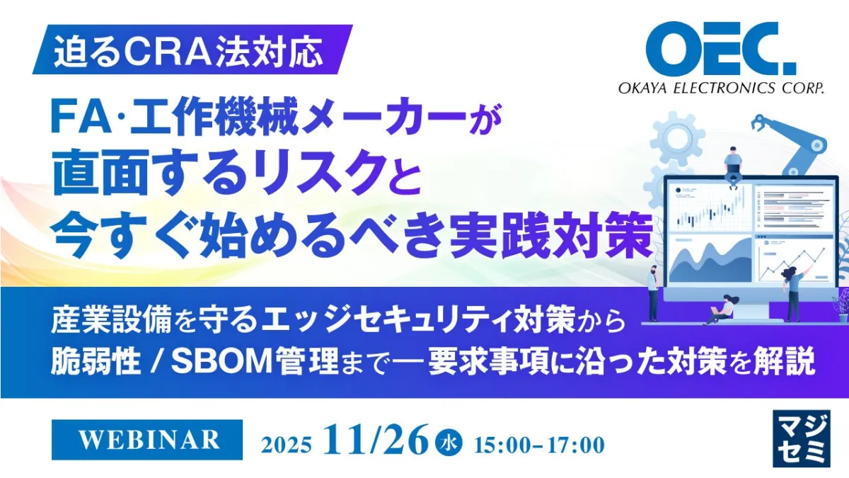 本ウェビナーでは、まずCRAの基本的な概要とその背景を解説します。特にFA・工作機械メーカーが直面するリスクを理解し、どのような対策が今必要なのかを明らかにします。さらに具体的な対策として、SBOMの整備や脆弱性管理に関する技術的要件についても触れ、セキュリティSaaS「FutureVuls PSIRT」を用いた実例を交えて、初期対応の進め方について具体的な手法を提示します。