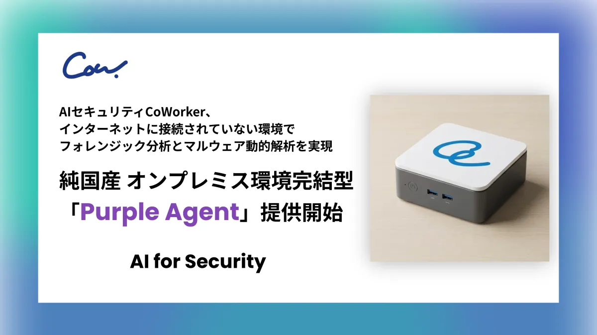近年、サイバー攻撃が高度化し、その対応が求められる中、CoWorker株式会社は新たに純国産のAIセキュリティ製品「Purple Agent」の提供を決定しました。2025年12月からの提供開始を予定しており、この製品は特に医療や金融、自治体などの機密情報を扱う組織に最適です。クライアントは、これまで以上に迅速かつ安全にインシデントを検知・対応できることから期待が寄せられています。