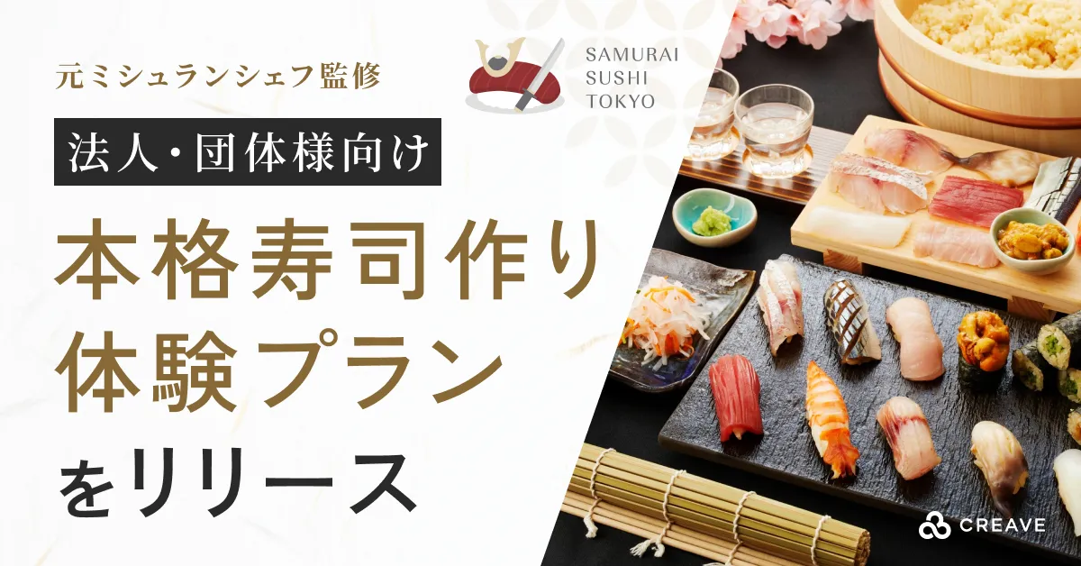 株式会社ガイアックスの子会社であるCREAVEが、法人・団体向けに新たな「本格寿司作り体験プラン」をスタートしました。このプランは、元ミシュランシェフの監修のもと、本格的な寿司作りを体験できるというものです。これまで訪日外国人旅行者に向けて提供されていた「SAMURAI SUSHI TOKYO」の人気を受け、法人需要の高まりに応える形でのリリースです。