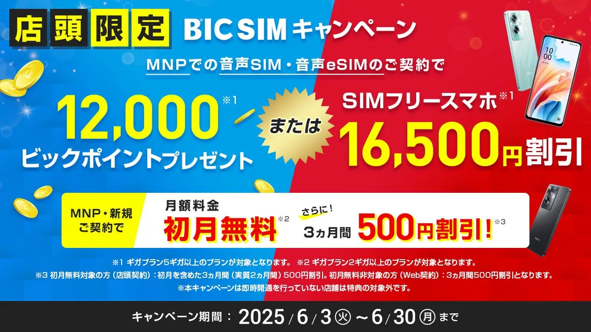 最大15,000ポイント還元のBIC SIM店頭キャンペーン大注目!