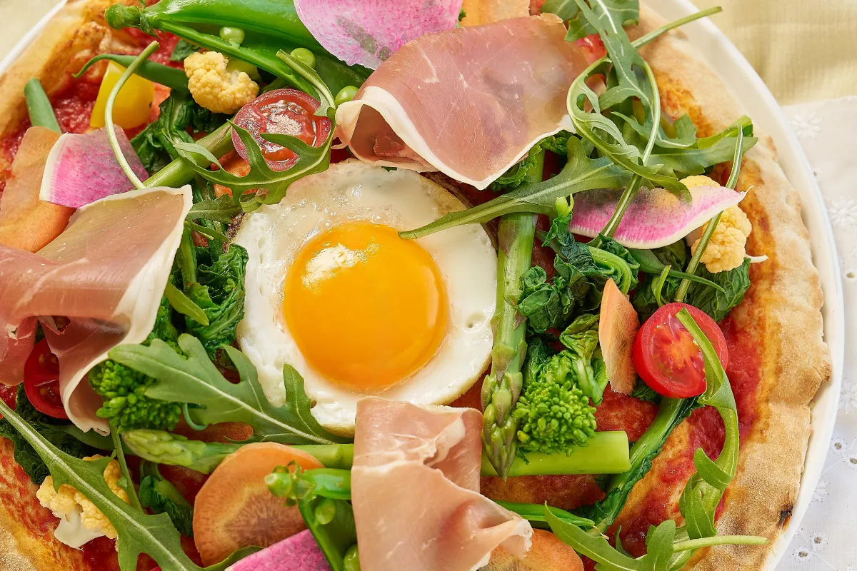 CODA ROSSAでは、春野菜のピザや伝統のカルボナーラ。