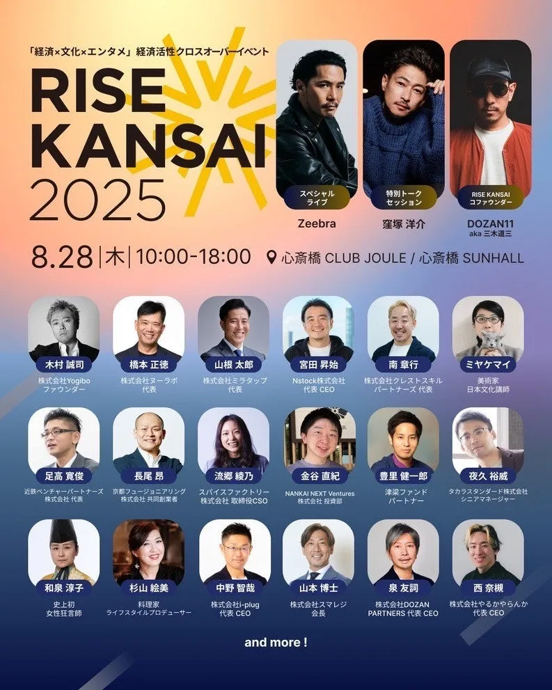 8月28日に心斎橋で開催される「RISE KANSAI 2025」は、関西の経済と文化を活性化させるためのビジネスカンファレンスです。発起人であり、ヒップホップアーティストのDOZAN11(通称三木道三)を中心に、さまざまなジャンルのプロフェッショナルたちが集結します。本イベントは、音楽、文化、ビジネスを織り交ぜた新しい試みとして注目されています。