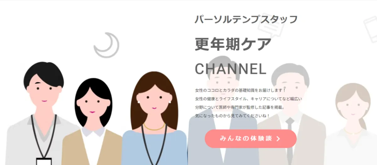 TRULYの調査によると、パーソルテンプスタッフの登録スタッフの約55%が40〜59歳であり、更年期世代が多く在籍しています。TRULYは、彼らが正しい情報を得て、必要に応じて専門家に相談できる環境を整え、健康的で充実したキャリアを築けるようにサポートしています。