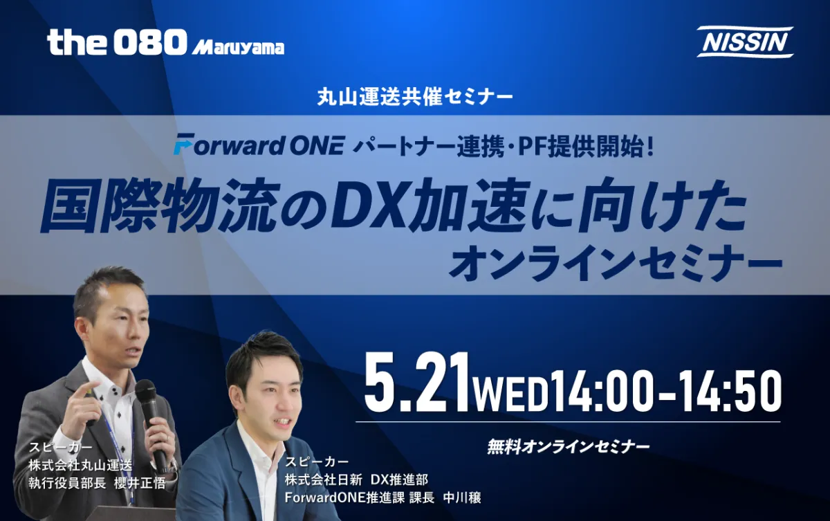 日新と丸山運送が共催するオンラインセミナーが、5月21日(水)に開催されます。このセミナーでは、国際物流の効率化を図るために開発されたオンラインサービス「Forward ONE」の活用法が紹介される予定です。