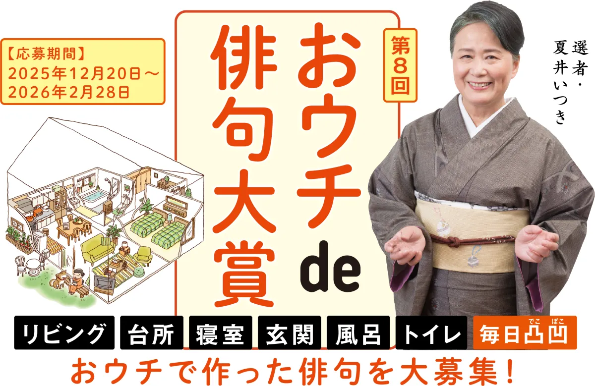 応募締切は2026年2月28日です。期間中、インターネットを通じて俳句を投稿することが求められます。応募テーマは「リビング」「台所」「寝室」「玄関」「風呂」「トイレ」「毎日凸凹」の7つ。参加者はお好きなテーマを選び、それに基づいた作品を五・七・五のリズムに則って表現します。特に夏井氏が主催するオンライン俳句教室「おウチde俳句くらぶ」の有料会員の方は、複数のテーマに自由に応募することができます。
