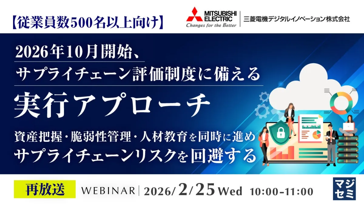 ウェビナーでは、サプライチェーン評価制度の概要を整理し、企業が今から着手すべき具体的なステップについて詳しく説明します。たとえば、アタックサーフェスマネジメントや脆弱性管理サービスの活用を通じて、社内外のIT資産を正しく把握し評価する仕組みを作り出す方法を紹介します。