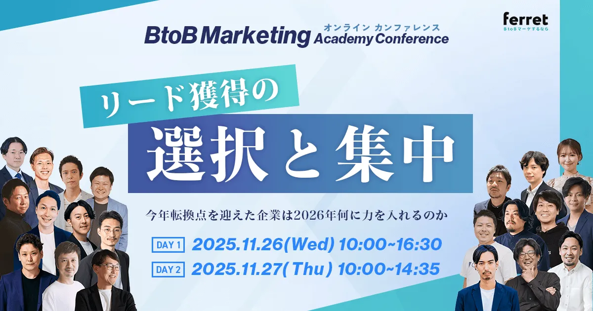 株式会社ベーシックが主催するオンラインカンファレンス「BtoB Marketing Academy Conference」が、2025年11月26日(水)から27日(木)の2日間にわたって開催されます。このイベントでは、「リード獲得の“選択と集中”」をテーマに、現在のマーケティング環境での課題や成功事例が紹介されます。