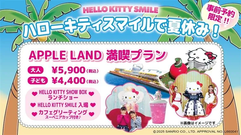 この夏、特に注目したいのが『APPLE LAND満喫プラン』です。このプランでは、ハローキティのメディアアート&レストラン「HELLO KITTY SMILE」の入場券が付いており、その他にも特別なランチ公演やカフェでのグリーティング体験が含まれています。